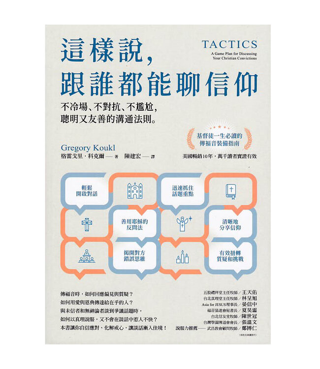無論你是全新的基督徒、資深教友,還是傳福音小組的同工;無論你的個性是否內向、能力如何,只要學習本書中的方法,你都可以像作者一樣輕鬆地開啟對話,進行有意義、有成果的屬靈溝通。最重要的是,你將學會如何讓人們思考耶穌。