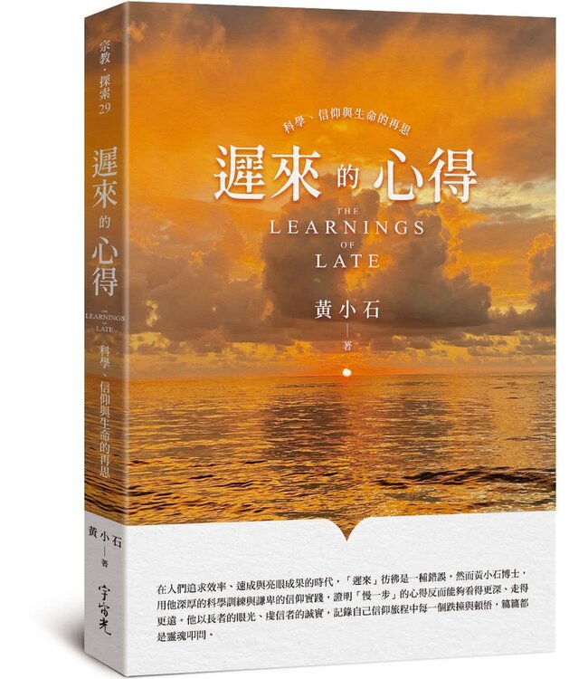 在人們追求效率、速成與亮眼成果的時代,「遲來」彷佛是一種錯誤。然而黃小石博士,用他深厚的科學訓練與謙卑的信仰實踐,證明「慢一步」的心得反而能夠看得更深、走得更遠。他以長者的眼光、虔信者的誠實,記錄自己信仰旅程中每一個跌撞與頓悟,篇篇都是靈魂叩問。