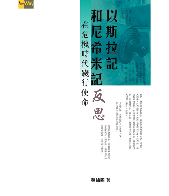 本書探討以斯拉記和尼希米記的信息,沿着歷史的足跡,探尋在時代洪流中,神賦予祂子民的使命和路向,尤其是如何回應一個充滿危機的時勢。