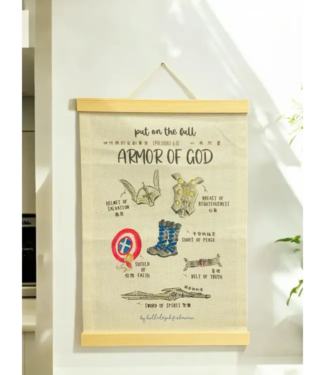 神所賜的全副軍裝以弗所書六章10節綿麻簡潔掛部裝飾配上金句尺寸: 30x40cm