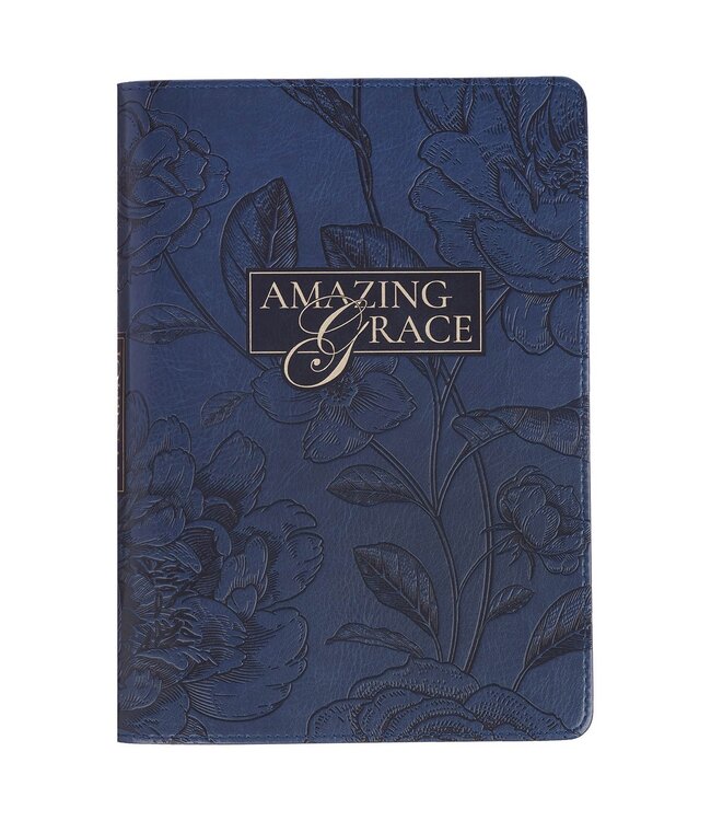 The Amazing Grace Navy Blue Floral Faux Leather Classic Journal with Zipper Closure will elevate your writing experience with its beautiful floral design and heartwarming sentiment. Use it for school, work, church, or home—this journal is a great place to get your thoughts on paper and remember and reflect on God's goodness.