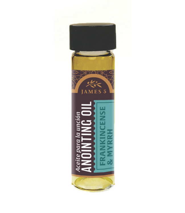 Broadman Church Supplies James 5: Anointing Oil – Frankincense and Myrrh – Glass Vial (Net Wt. 1/2 oz.) consists of 1/2 ounce of extra virgin olive oil and the fragrances of Frankincense & Myrrh, packaged in a glass vial which measures 5/8" x 2 1/2". The vial is topped with a screw-tight plastic lid.