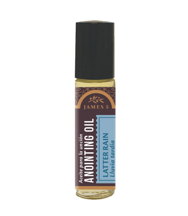 Broadman Church Supplies James 5: Anointing Oil – Latter Rain – Roll-On Applicator (Net Wt. 1/3 oz.) consists of 1/3 oz. of extra virgin olive oil and the fragrances of Latter Rain, packaged in a glass roll on vial which measures 3/4" x 3 1/4". The vial is topped with a roll on ball for easy no mess, no spill application, and screw tight plastic lid.