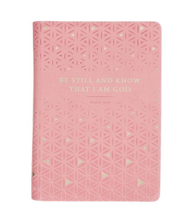 The Be Still and Know Geometric Pink Faux Leather Journal with Zipper Closure offers a calm, feminine place to pause and reflect. The women's journal has a quiet, geometric design that complements the stillness and peace promised in Scripture.