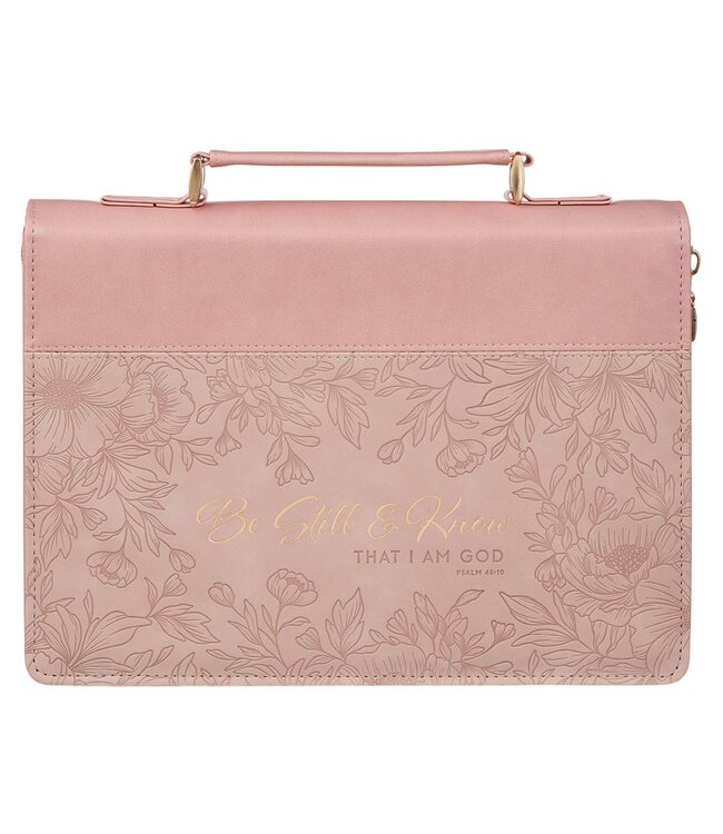 The Be Still and Know Pink Floral Faux Leather Classic Bible Cover pairs a serene floral design with a gentle reminder to pause, rest in God’s presence, and trust His steadfast care.