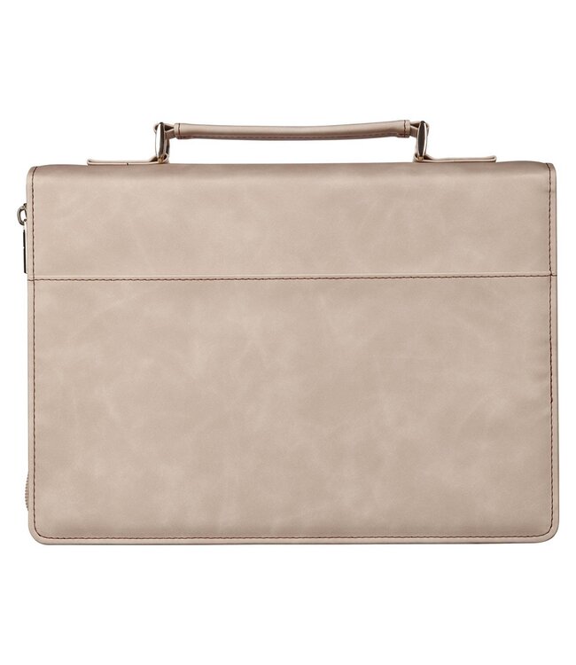 Remind yourself to trust that there is beauty and purpose in all things every time you reach for the Everything Beautiful Taupe Faux Leather Bible Cover. This stunning Bible cover will protect your precious Bible and remind you that even if you cannot see the outcome, it has a place in God's grand plan for your life.