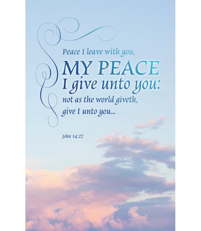 This Broadman Church Supplies Funeral Bulletin is adorned with a beautiful 4-color image and is designed for use during a Funeral celebration service any time of the year. The featured verbiage is John 14:27 from the KJV translation of the Bible. All Broadman Church Supplies bulletins are sold in packages of 100 bulletins. A free downloadable template, designed to help with the layout of the bulletin is available under the Download header on this page.