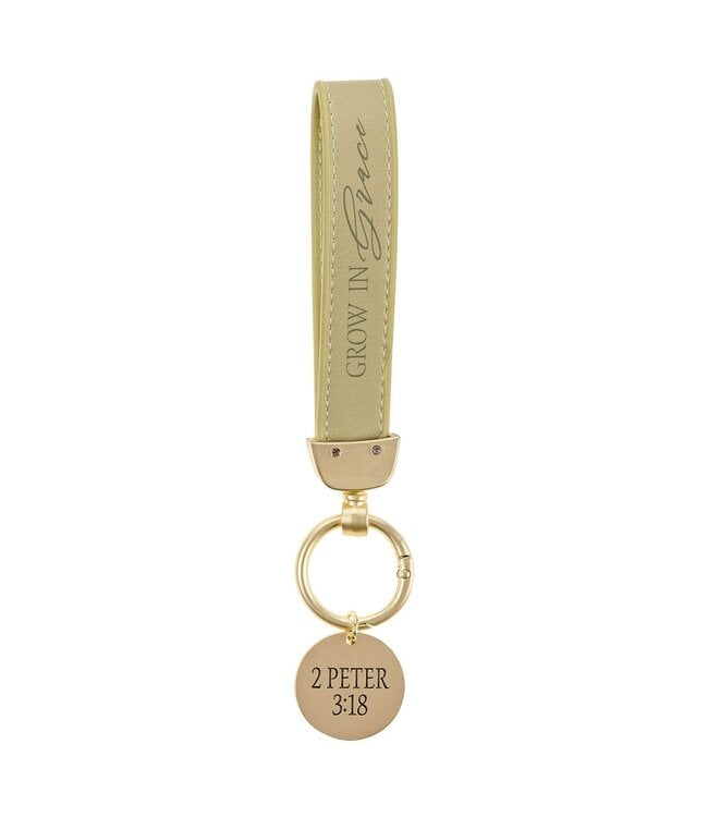 Give this wristlet keychain to a friend who’s learning to trust God in a new season, a daughter who’s finding her place in the world, or a Bible study leader who faithfully pours into others. Wherever life takes her, this lovely Grow in Grace Green Faux Leather Wristlet Keychain will remind her to keep growing in the knowledge and grace of God.