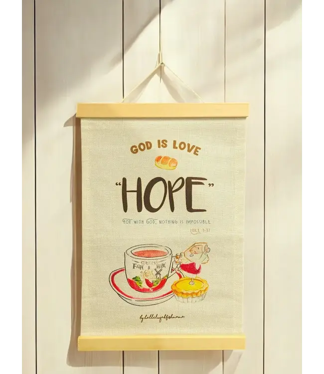 HOPE For with God, Nothing is Impossible 路加福音一章37節 綿麻簡潔掛部裝飾配上金句 尺寸: 30x40cm ...了解更多....