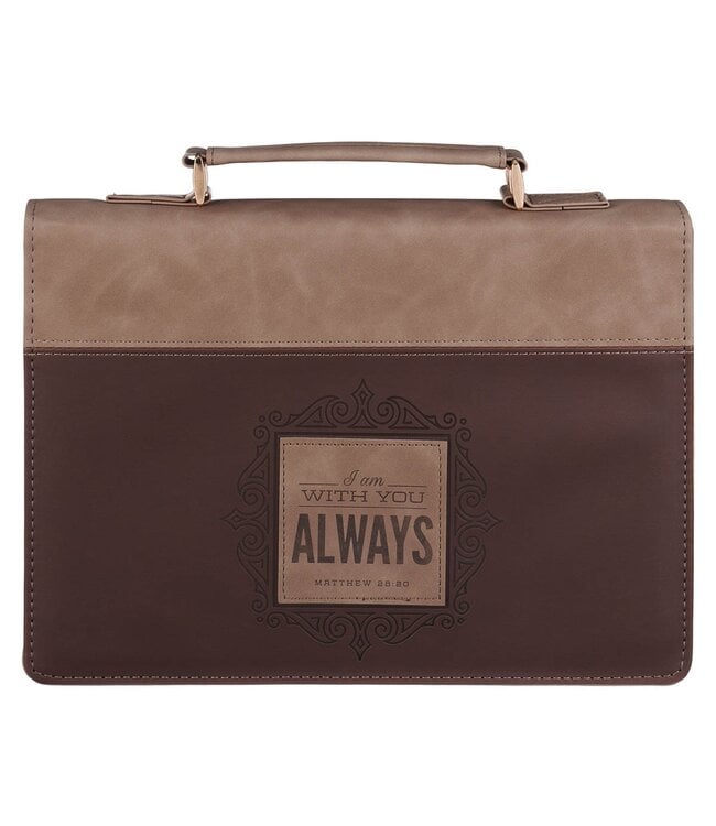 Bless a mom who faithfully cares for her family, encourage a new believer with a meaningful first Bible accessory, or a friend stepping into a challenging season as a reminder that Christ is always near when you give the I Am With You Always Tan and Brown Faux Leather Classic Bible Cover as an encouraging gift.