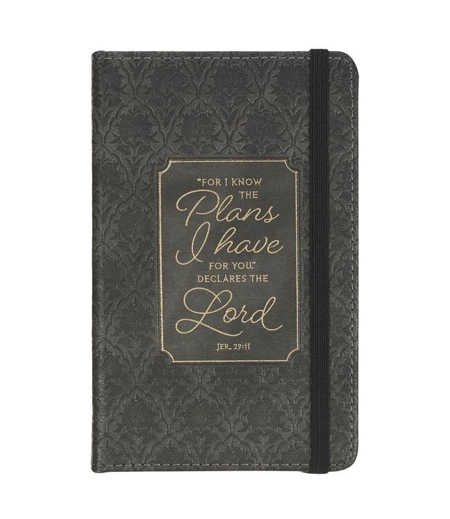 Give this compact notebook as a thoughtful graduation gift or tuck it into a care package. The I Know the Plans Graphite Gray Faux Leather Hardcover Notebook with Elastic Closure is a simple way to help a student stay focused, hopeful, and grounded in God's plan.