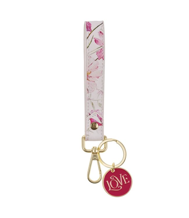 Linking your keys and fobs onto the Love Cherry Pink Floral Faux Leather Wrist Strap Keychain is a great way to keep a reminder of God's love for you close by.