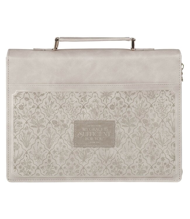 The Sufficient Grace Taupe Wildflower Tapestry Faux Leather Fashion Bible Cover keeps Mom's Bible safe while speaking directly to her heart. Between the long days, endless laundry, and late-night worries, this Bible cover's message will strengthen her heart when she finally sits down to read Scripture.