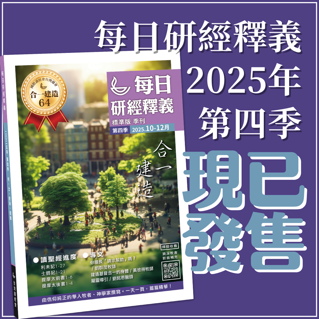 這是一本輔助信徒,每日讀經靈修的季刊,幫助信徒明白聖經,扎根真理,養成讀經習慣,突破靈修艱難!