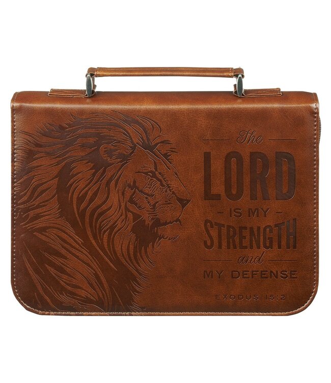 The Lord is My Strength Lion Honey-brown Faux Leather Classic Bible Cover is the ideal gift for the man in your life who leans on God's strength every day.