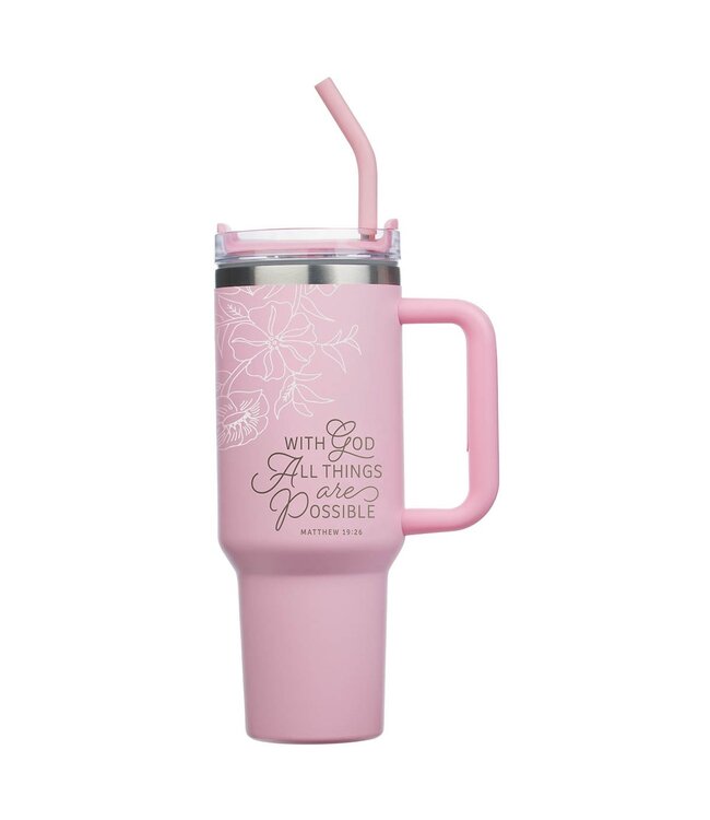 The Things Are Possible Pink Poppy Stainless Steel Travel Tumbler with Straw helps you stay refreshed and encouraged throughout your day. Whether you're heading to the gym, running errands, or keeping up with a busy schedule, each sip reminds you that all things are possible with God.