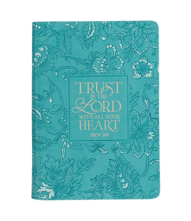 The Trust in the Lord Teal Floral Faux Leather Journal with Zipper Closure blends bold floral beauty with a beautiful reminder to trust God wholeheartedly. This journal for women has a beautiful design, and a message to encourage her to let go of worry and place every thought and prayer in His hands.