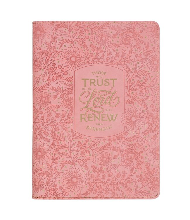 Encourage a loved one with this journal on her birthday, at a graduation, or during a season of change. The Trust Pink Floral Faux Leather Classic Journal with Zipper Closure is a heartfelt reminder that when she trusts in the Lord, He will renew her strength—day after day.
