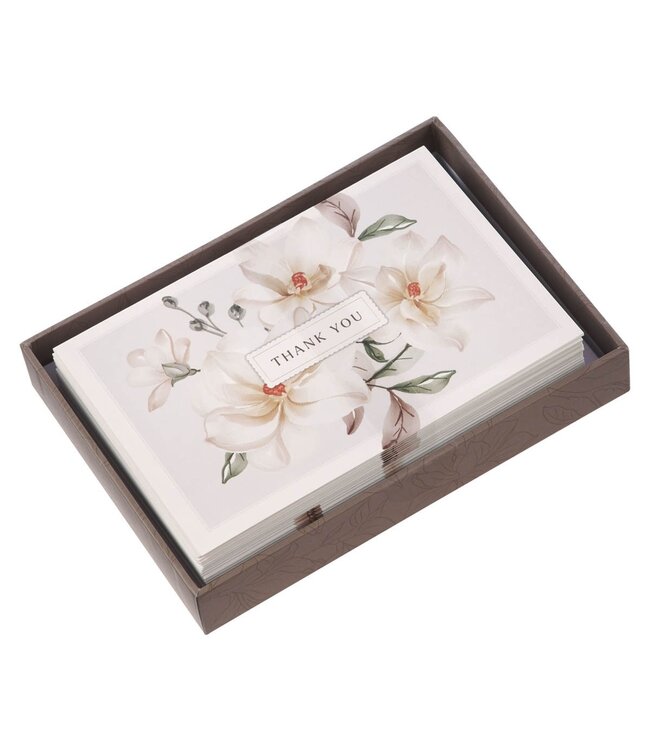 The White Magnolia Thank You Note Card Set is an elegant way to let someone know just how much their kindness, thoughtfulness, and care mean to you.